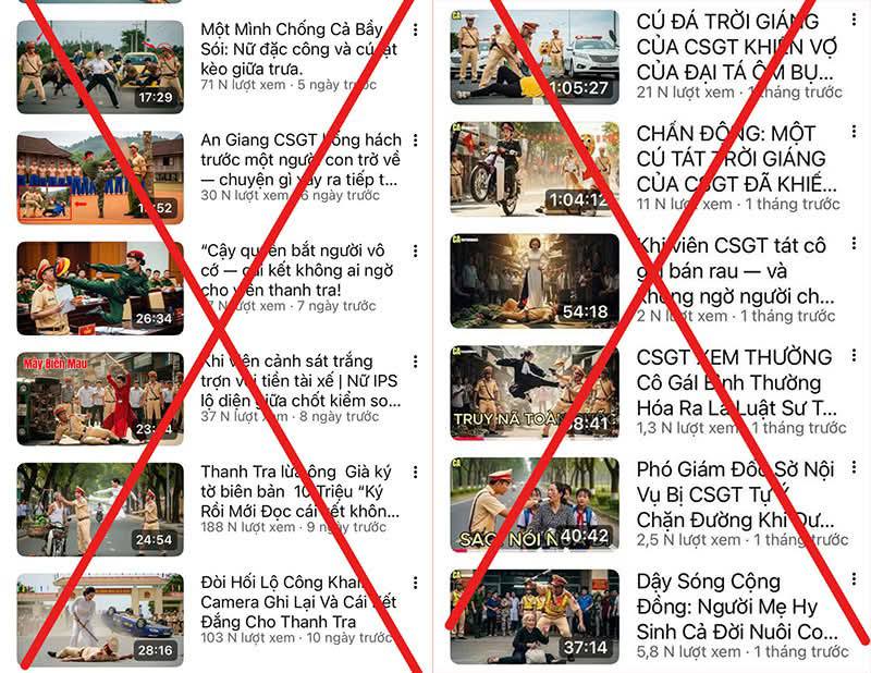 Những ngày gần đây, trên nền tảng YouTube xuất hiện nhiều kênh đăng tải các clip có nội dung xuyên tạc, bôi nhọ lực lượng CAND, đặc biệt là CSGT. Theo phản ánh của người dân, các kênh như “Kỳ Án”, “Lật mặt sự thật”, “CA Truyện hình sự”, “Bí mật sau cánh cửa”... đang đăng tải hàng trăm video được tạo dựng bằng công nghệ AI, trong đó xuất hiện những hình ảnh và lời thoại có nội dung sai sự thật, phản cảm, xúc phạm danh dự và uy tín của lực lượng Công an.