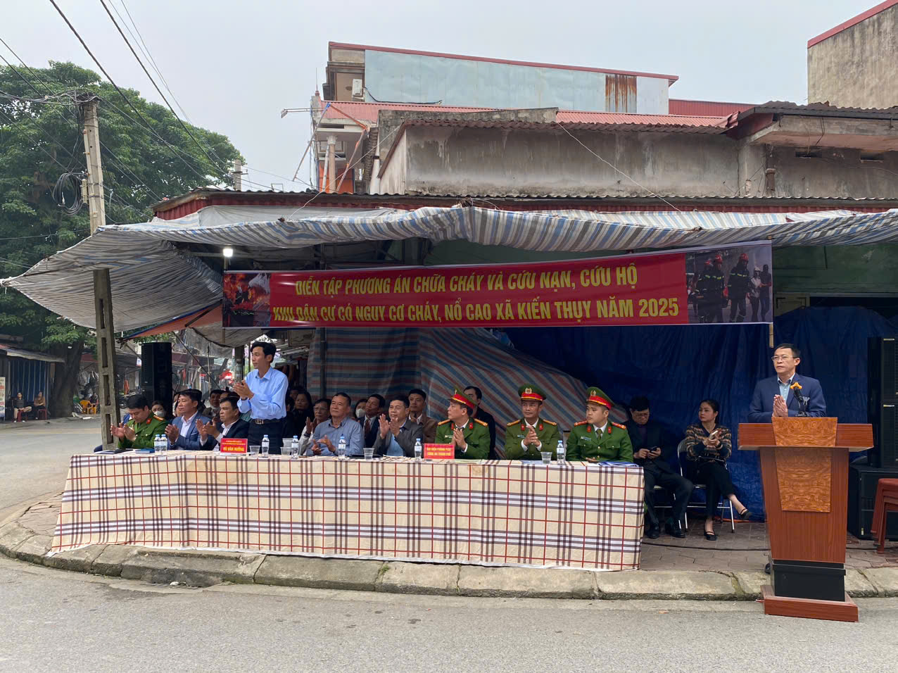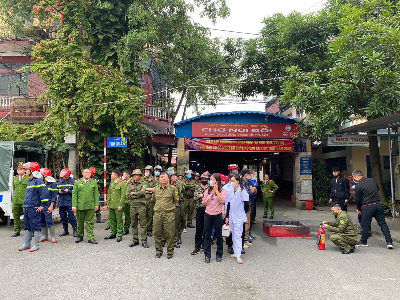 Chiều ngày 12/12/2025, UBND xã Kiến Thụy tổ chức diễn tập phương án chữa cháy và cứu nạn, cứu hộ tại khu vực chợ Núi Đối -khu dân cư có nguy cơ cháy, nổ trên địa bàn xã.