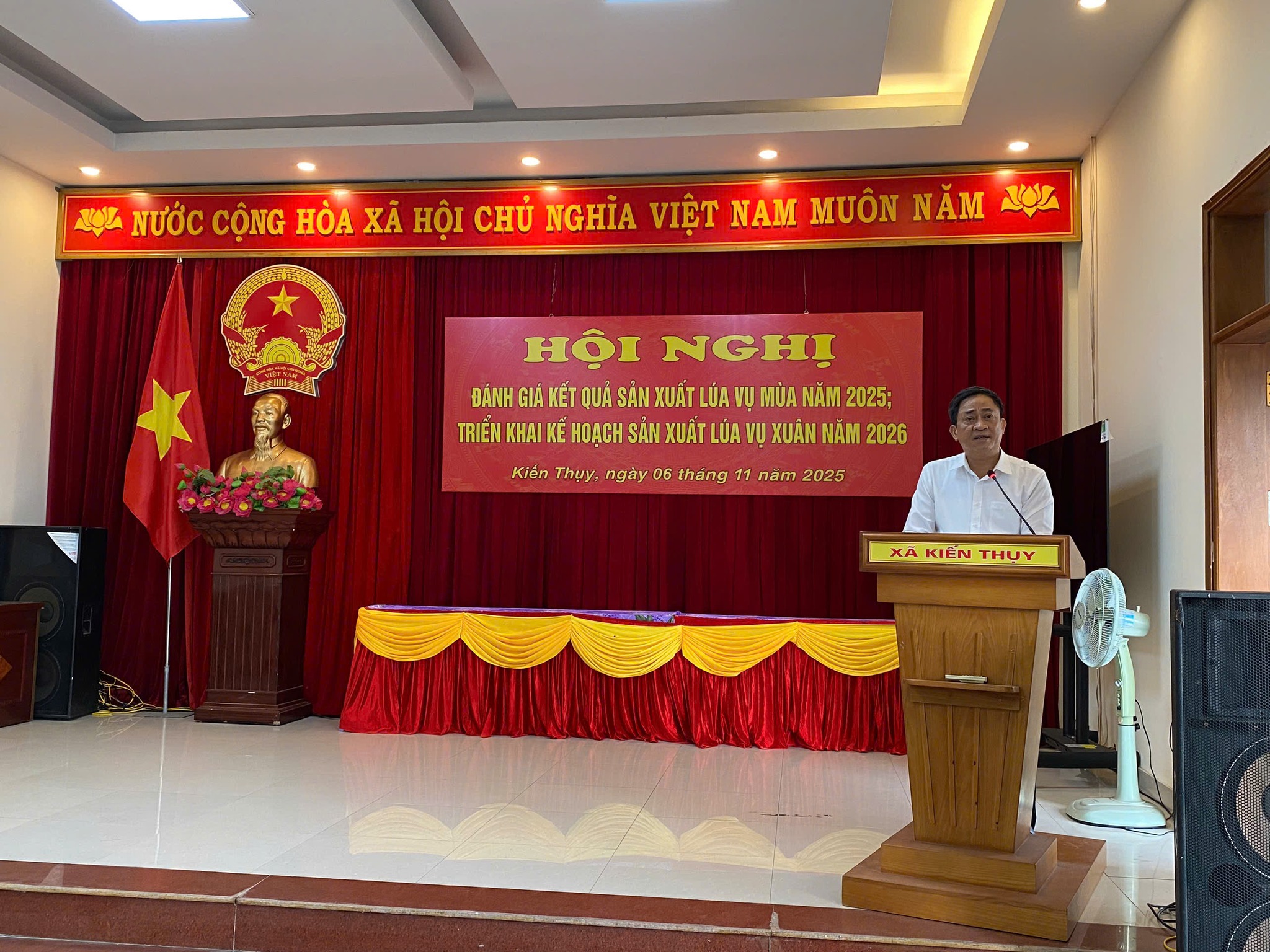 Chiều ngày 06/11/2025, Ủy ban nhân dân xã Kiến Thụy tổ chức Hội nghị đánh giá kết quả sản xuất lúa vụ Mùa năm 2025; triển khai kế hoạch sản xuất lúa vụ Xuân năm 2026.