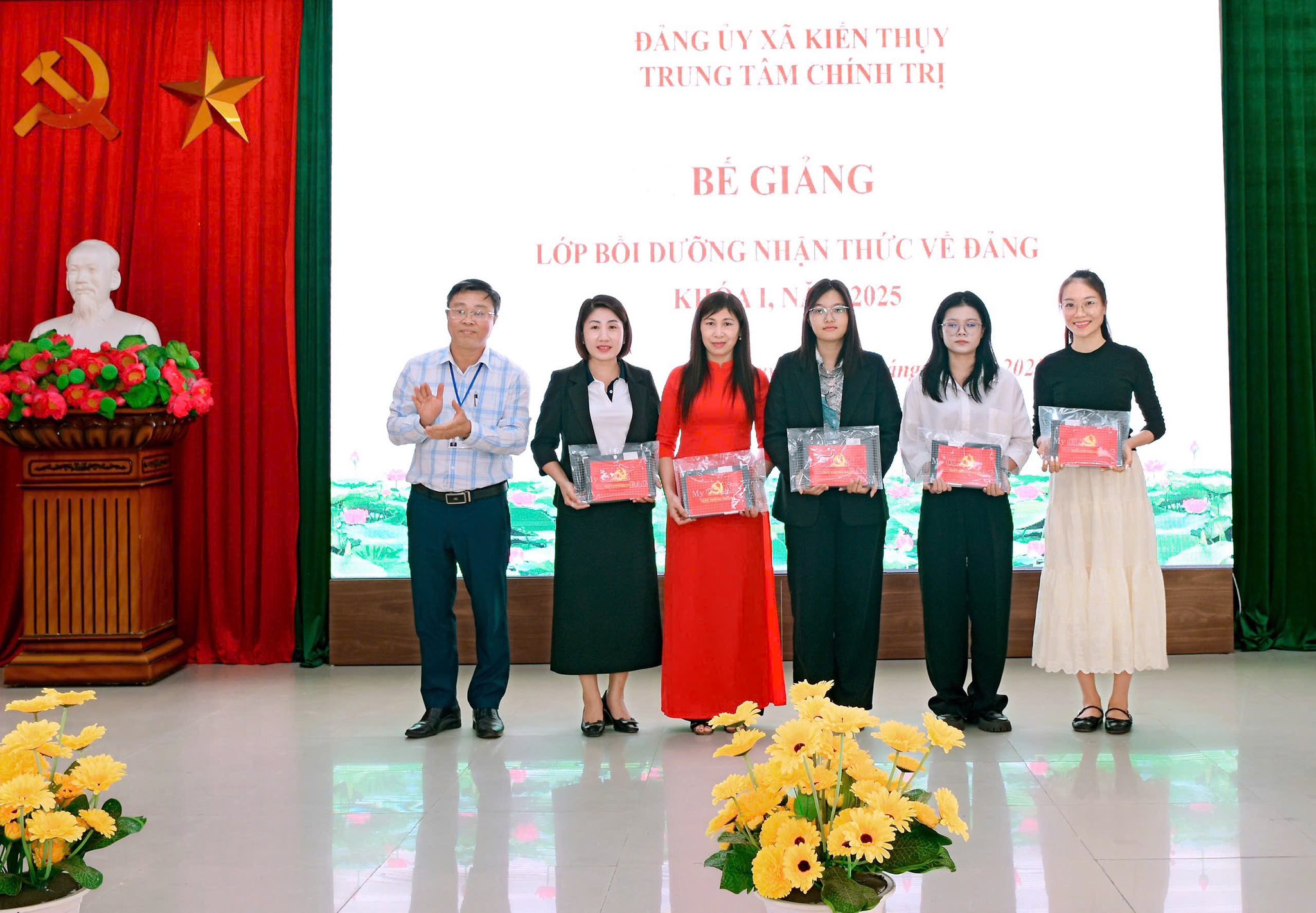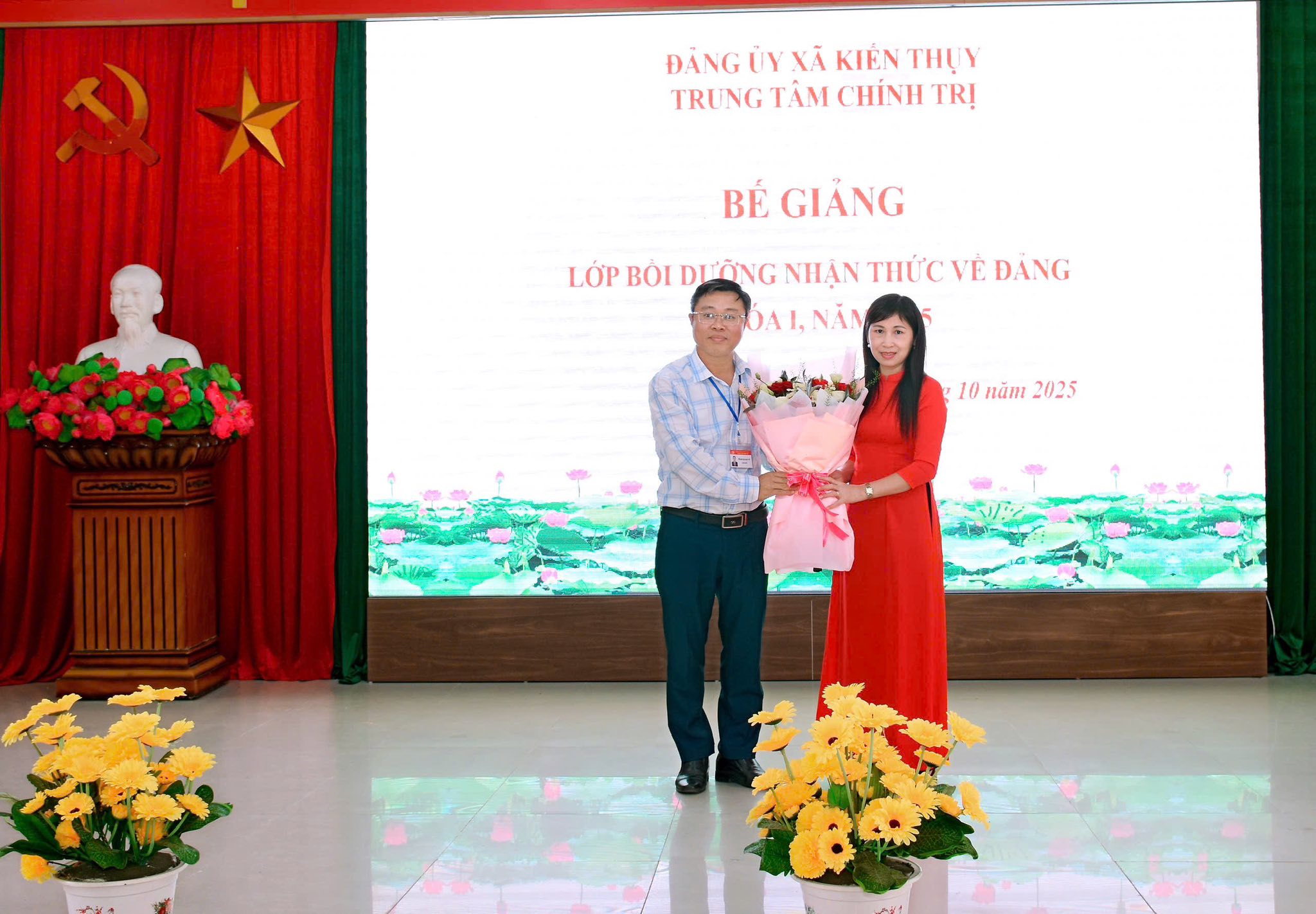 Sáng ngày 27/10/2025, Trung tâm Chính trị xã Kiến Thụy tổ chức Bế giảng Lớp bồi dưỡng nhận thức về Đảng khóa I năm 2025. Về dự có đồng chí Hoàng Ngọc Minh, UVBTV, Trưởng Ban xây dựng Đảng đảng uỷ xã Nghi Dương; Đồng chí Phạm Quang Vũ- ĐUV, Giám đốc Trung tâm Chính trị xã Kiến Thụy; Đại diện lãnh đạo Ban xây dựng Đảng đảng uỷ các xã Kiến Thụy, Kiến Hải, Trung tâm Chính trị và 95 học viên tham gia học lớp bồi dưỡng.