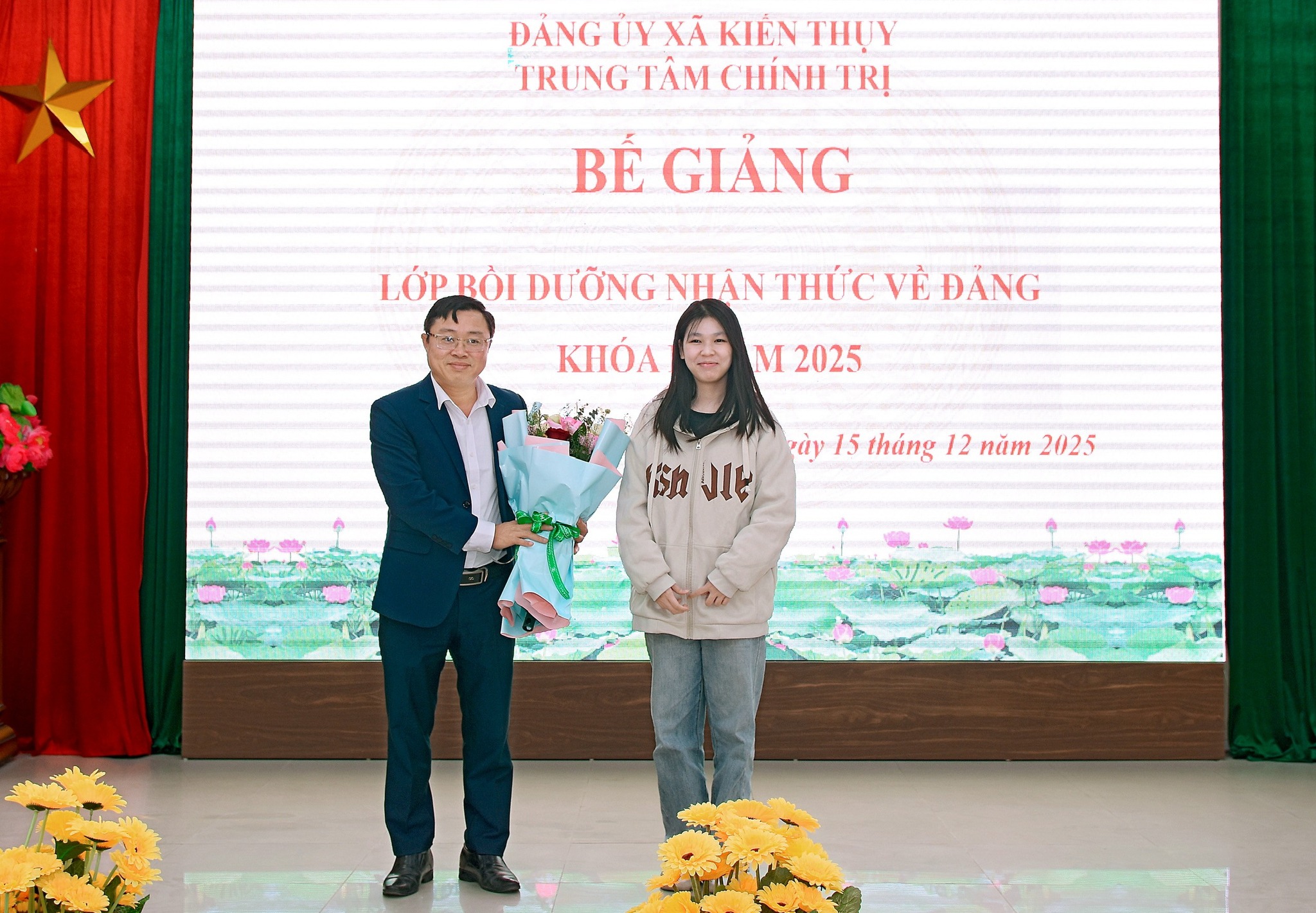 Sáng ngày 15/12/2025 Trung tâm Chính trị xã Kiến Thuỵ tổ chức Lễ Bế giảng lớp Bồi dưỡng nhận thức về Đảng khoá II năm 2025 dành cho Tân binh lên đường nhập ngũ năm 2026 và học sinh ưu tú các Trường THPT trên địa bàn 5 xã: Kiến Thuỵ, Kiến Hưng, Kiến Minh, Kiến Hải, Nghi Dương.