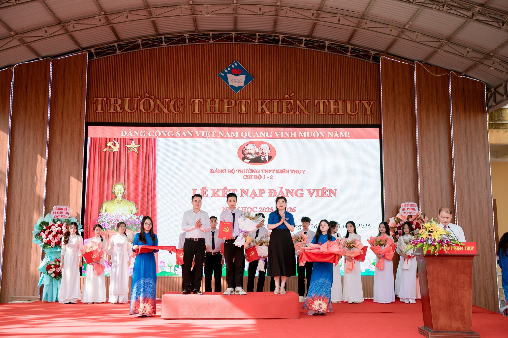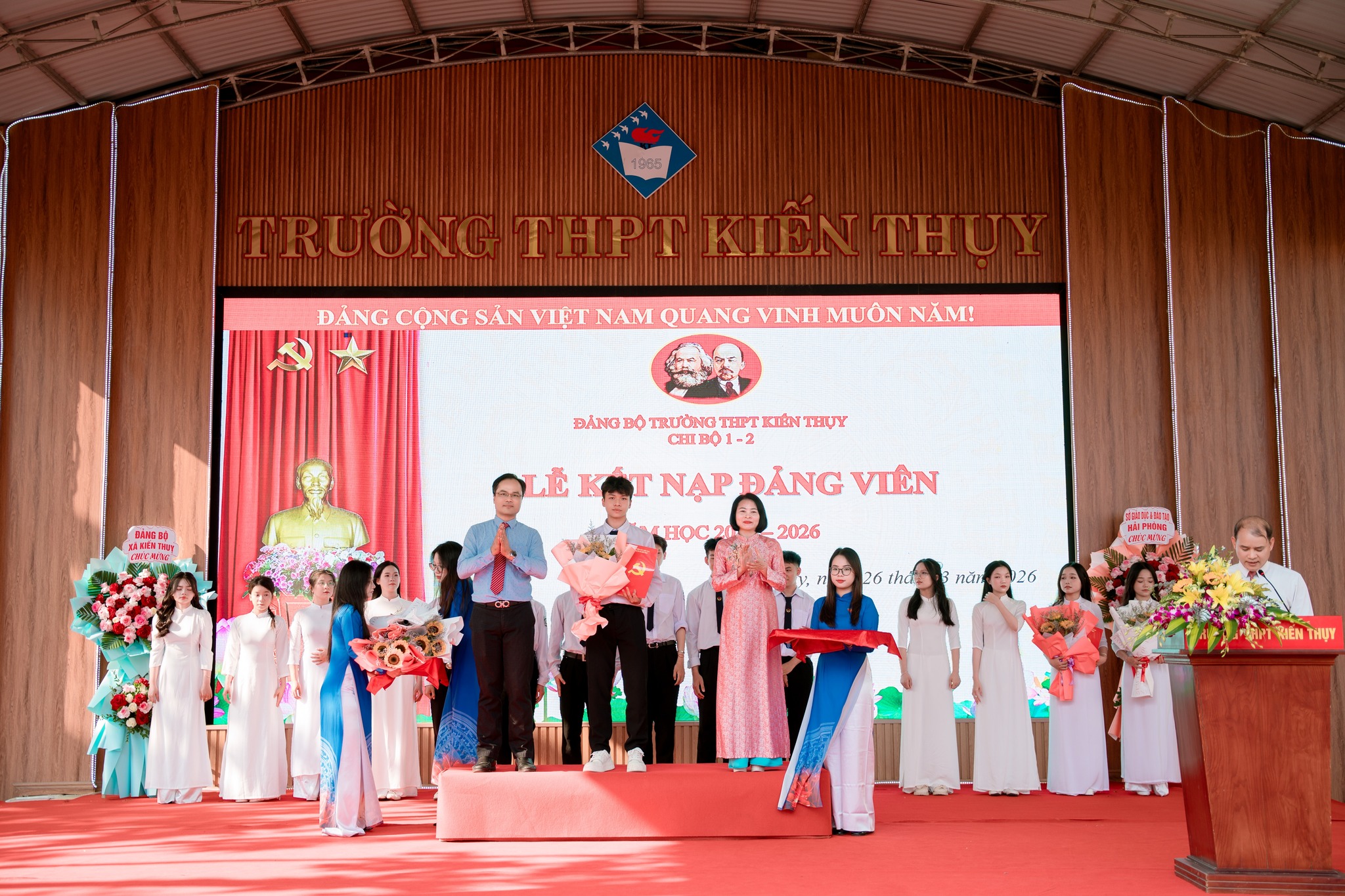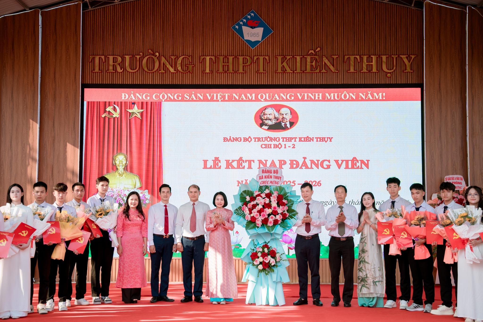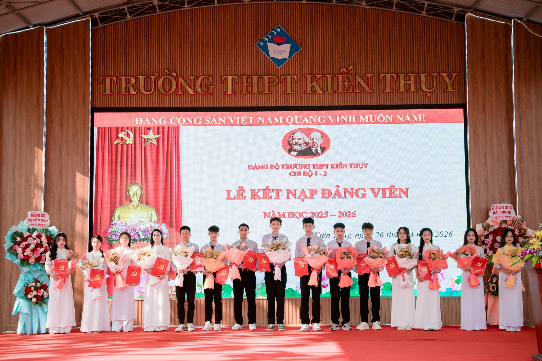 Chiều ngày 26/3/2026, Chi bộ 1 và chi bộ 2 Trường THPT Kiến Thụy đã trang trọng tổ chức Lễ kết nạp Đảng viên mới cho những quần chúng ưu tú là học sinh của nhà trường. Buổi lễ nằm trong chuỗi hoạt động ý nghĩa chào mừng kỷ niệm 95 năm Ngày thành lập Đoàn TNCS Hồ Chí Minh (26/3/1931 – 26/3/2026), đồng thời góp phần thực hiện nhiệm vụ phát triển đảng viên theo kế hoạch của Đảng bộ năm 2026.