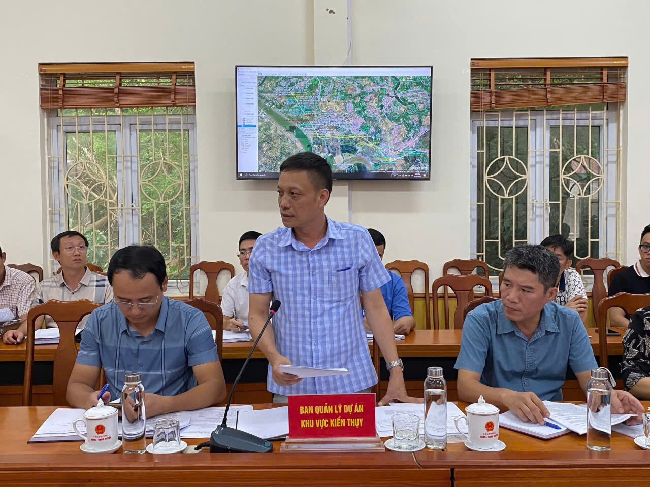 Nội dung kiểm tra, làm việc: Ban Quản lý dự án khu vực Kiến Thụy báo cáo tiến độ triển khai dự án và tình hình giải ngân vốn đầu tư công năm 2025. UBND các xã: Kiến Thụy, Kiến Hải, Kiến Hưng, Kiến Minh, Nghi Dương báo cáo công tác giải phóng mặt bằng. UBND xã Kiến Thụy chủ trì công tác chuẩn bị hội nghị và phối hợp đảm bảo điều kiện làm việc.